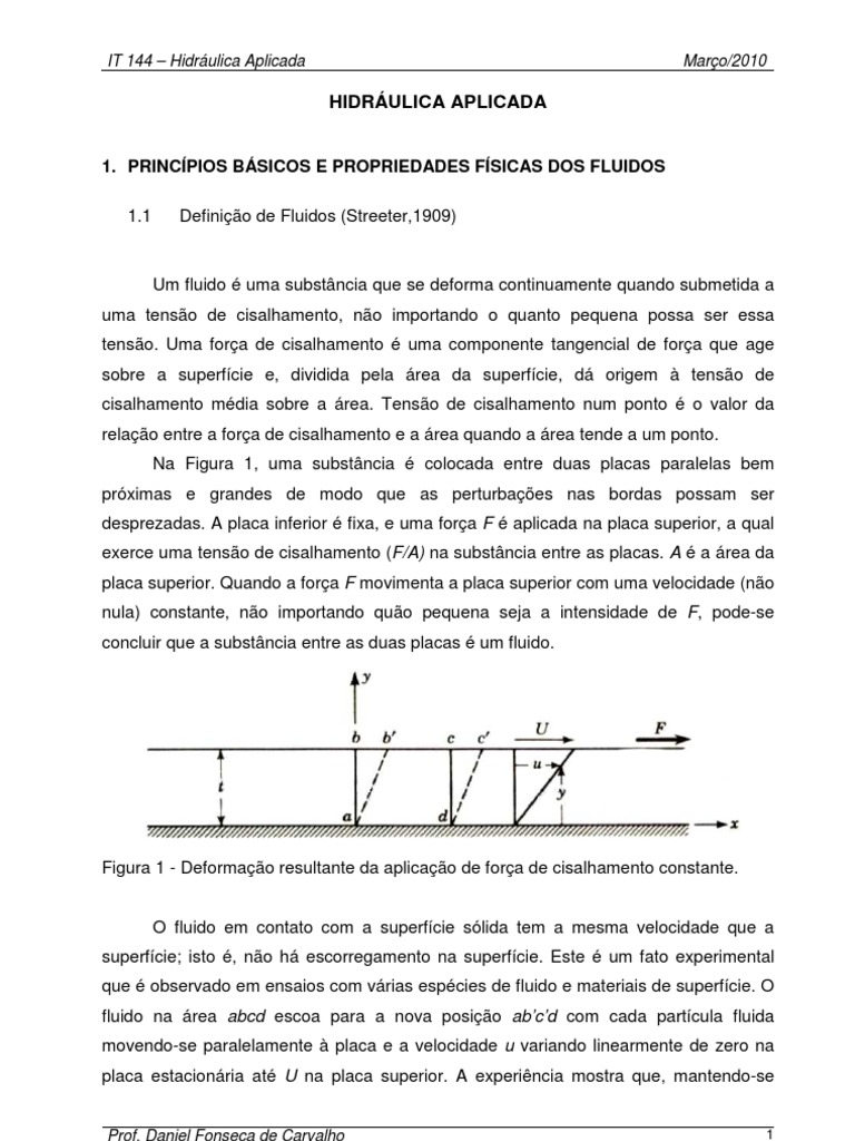 um escoamento unidimensional. O fator de proporcionalidade µ é chamado viscosidade