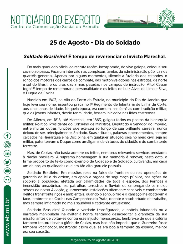 Viva o Duque de Caxias! Parabéns, Soldado do Exército Brasileiro!