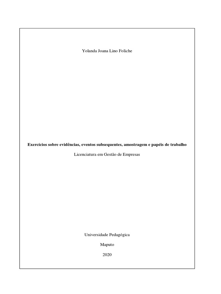 Exercícios sobre evidências, eventos subsequentes, amostragem e papéis de trabalho