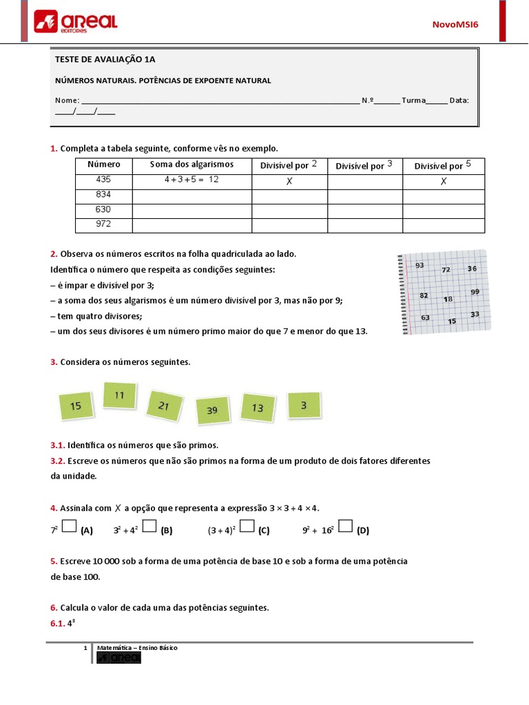 NÚMEROS NATURAIS. POTÊNCIAS DE EXPOENTE NATURAL