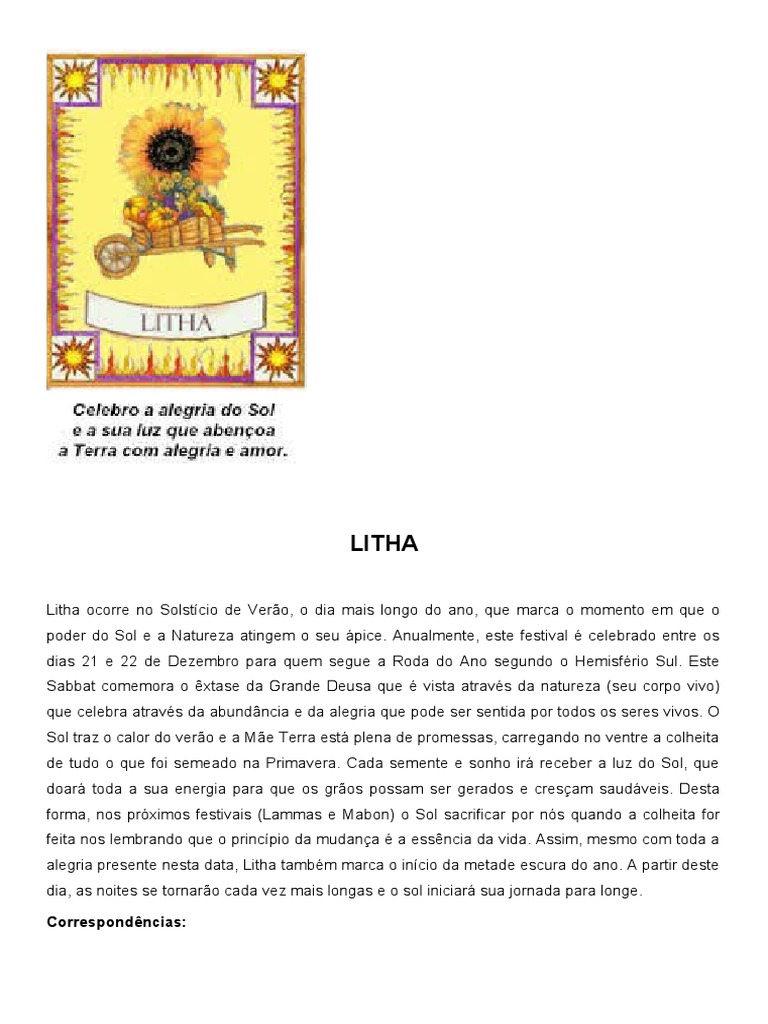 alegria presente nesta data, Litha também marca o início da metade escura do ano. A partir deste
