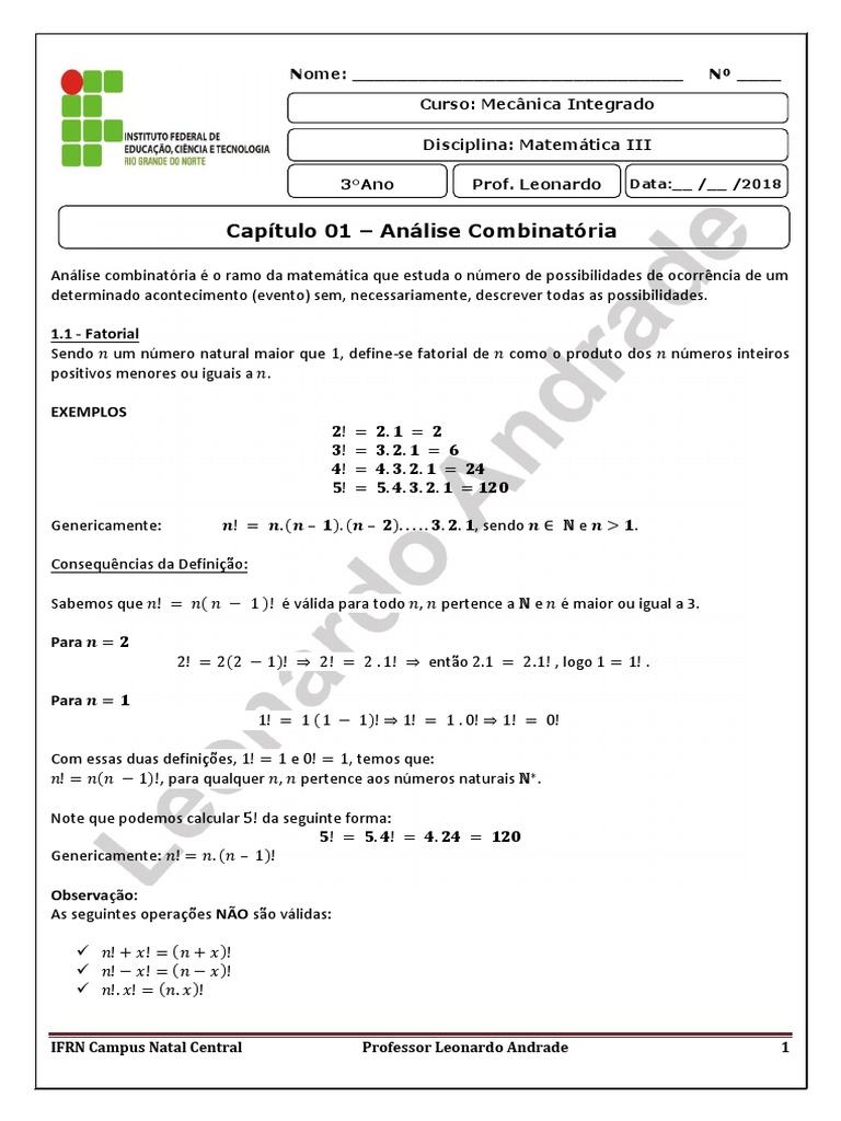 Análise Combinatória e Fatoriais em Matemática