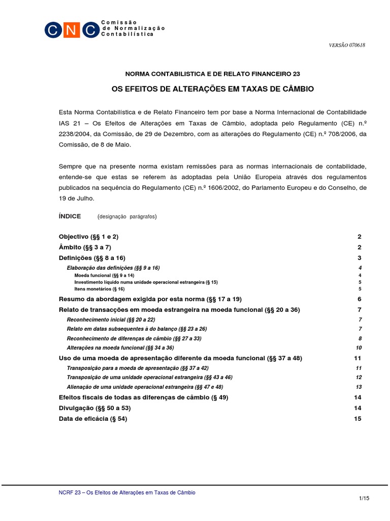 IAS 21 – Os Efeitos de Alterações em Taxas de Câmbio, adoptada pelo Regulamento (CE) n.º