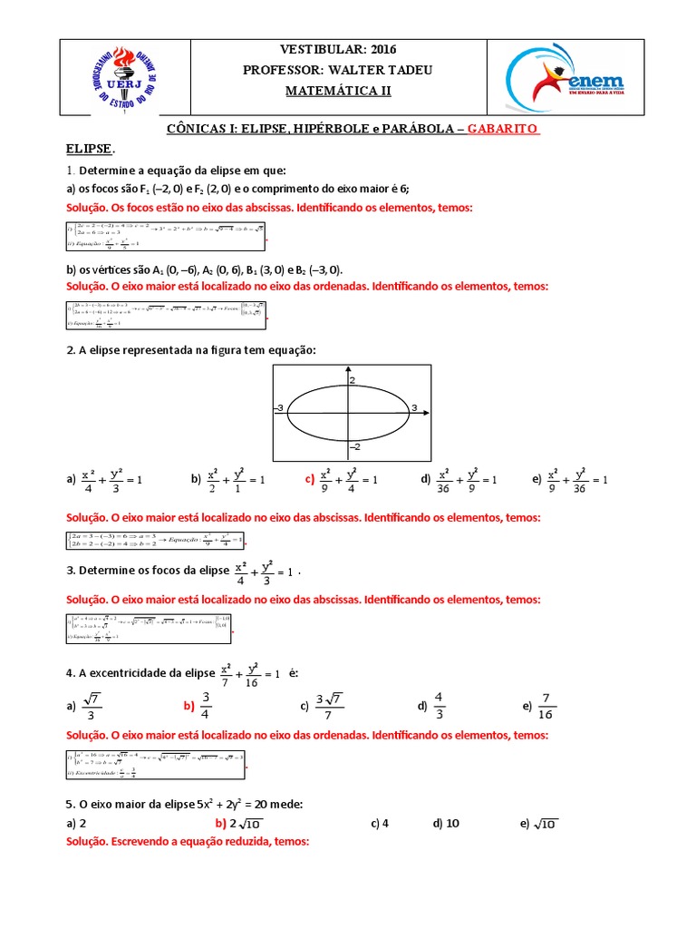 1. Determine a equação da elipse em que: