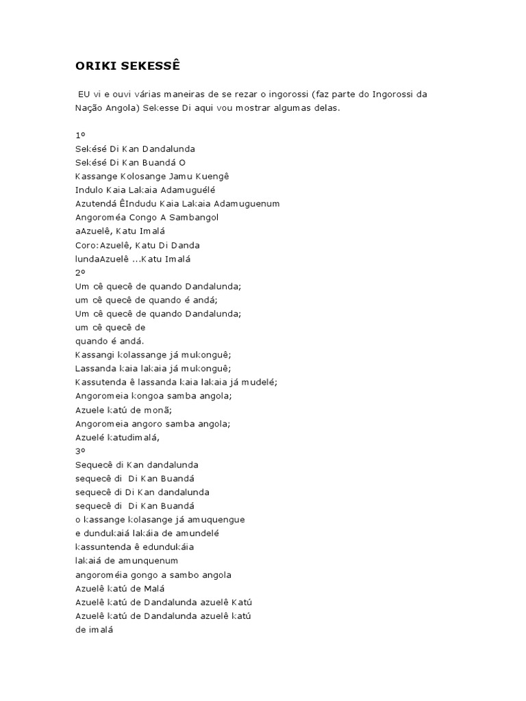 TEMOS TAMBEM ESTA VERSÃO PARA O ORIKI SEKESSÊ
