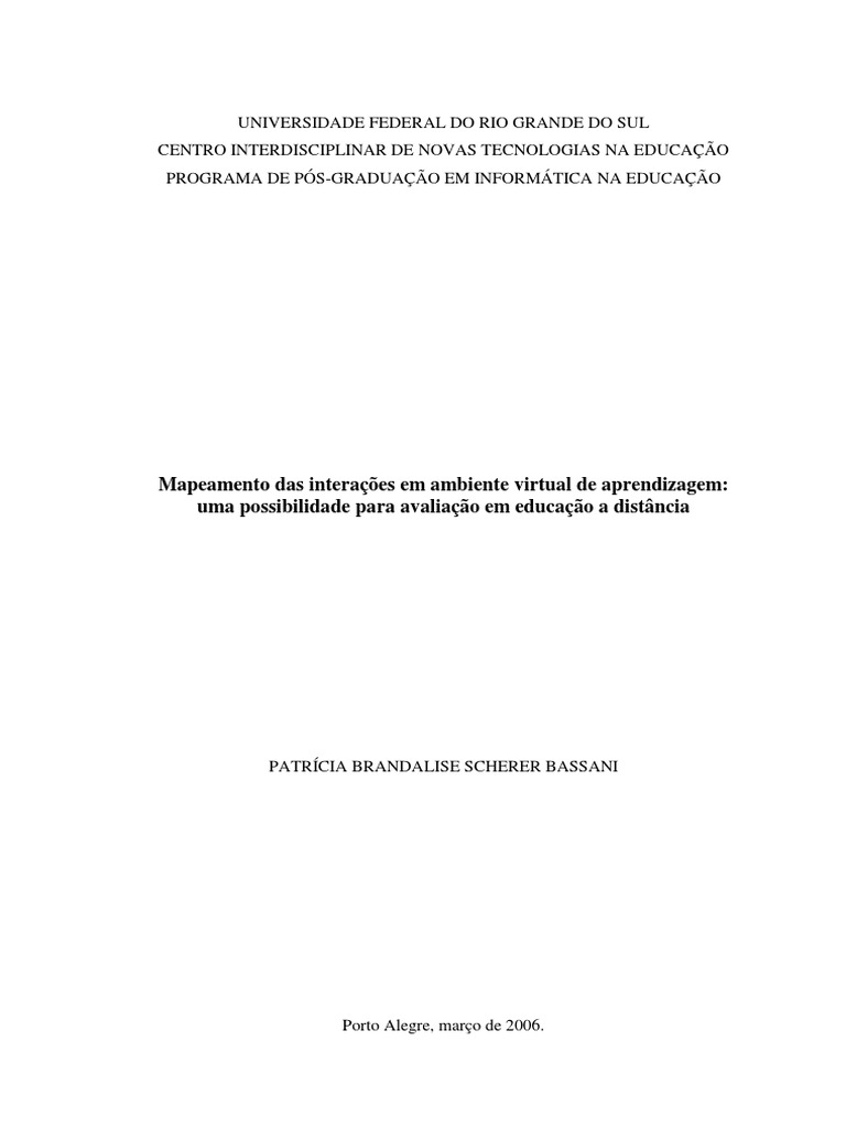 Educação, da Universidade Federal do Rio Grande do Sul – 2006.