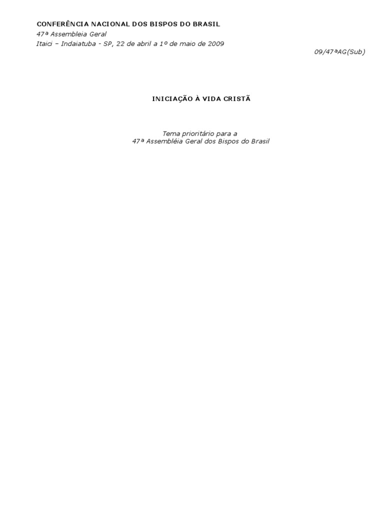 1. Esta reflexão sobre “Iniciação à Vida Cristã” atende a um pedido da 46ª Assembléia Geral dos