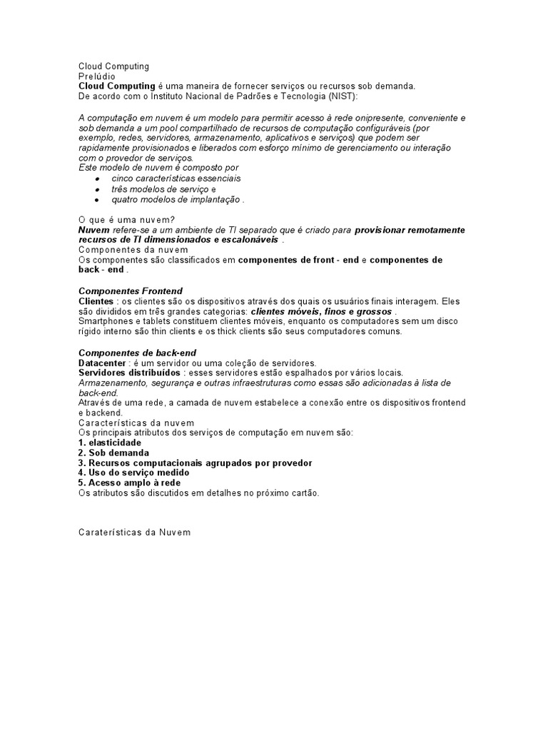 Cloud Computing é uma maneira de fornecer serviços ou recursos sob demanda.