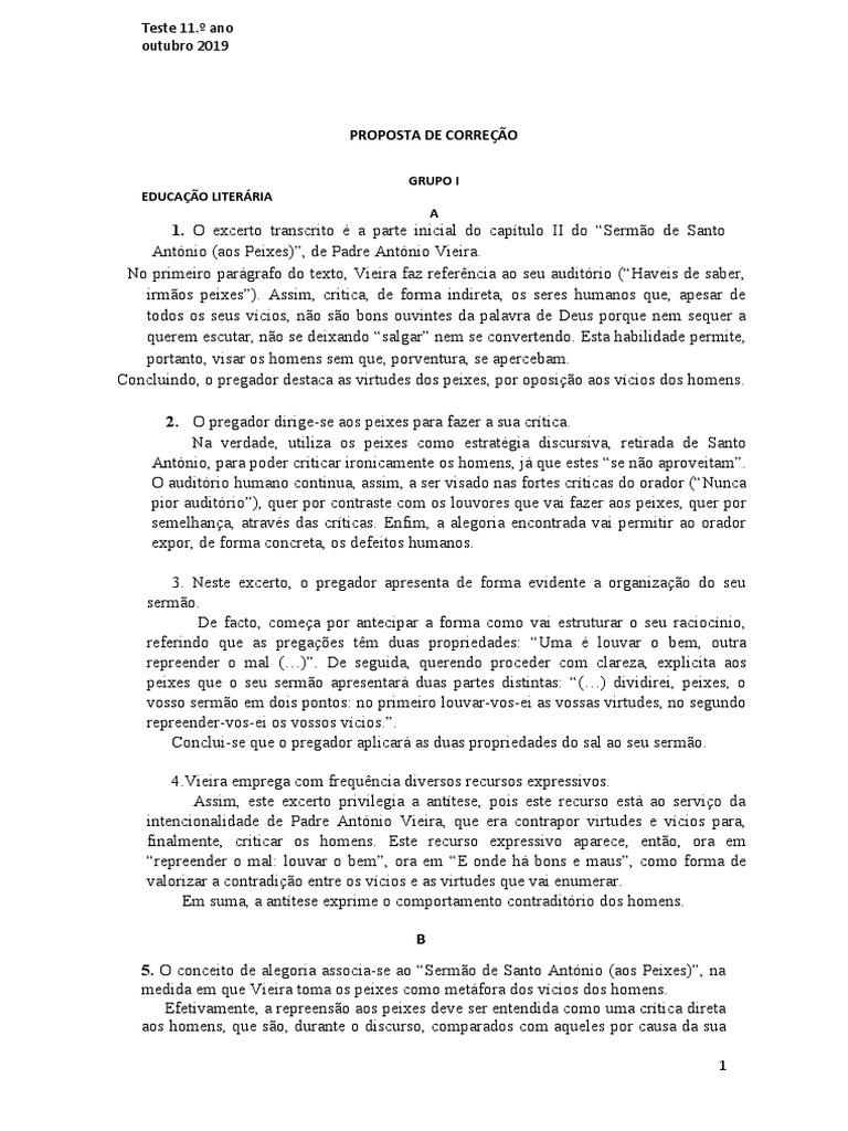 1. O excerto transcrito é a parte inicial do capítulo II do “Sermão de Santo