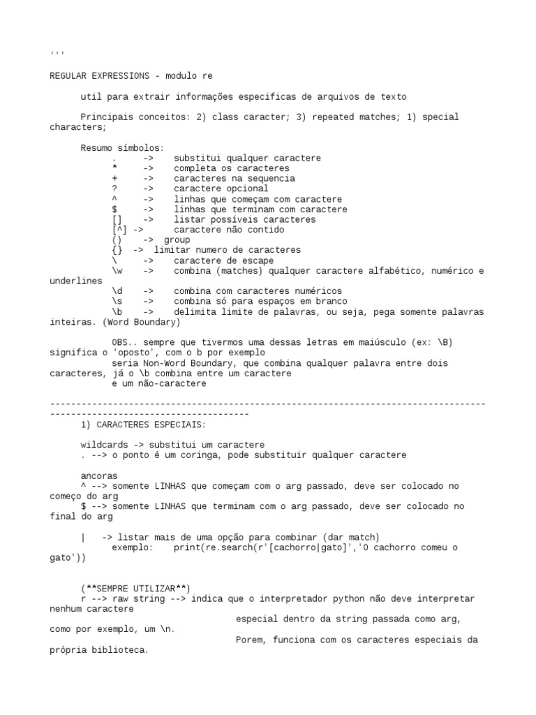 r --> raw string --> indica que o interpretador python não deve interpretar