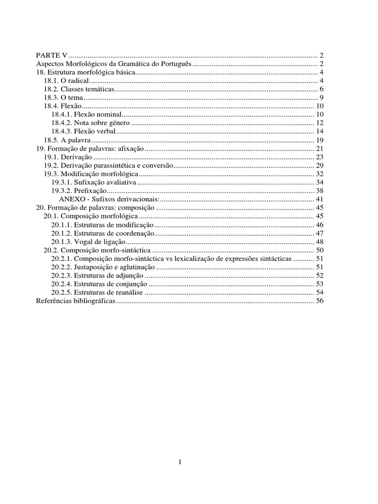 20.2. Composição morfo-sintáctica ..................................................................................... 50