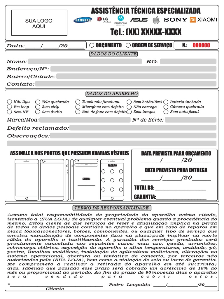 Data:_____/_____/20_____ ORÇAMENTO ORDEM DE SERVIÇO N.: 000000