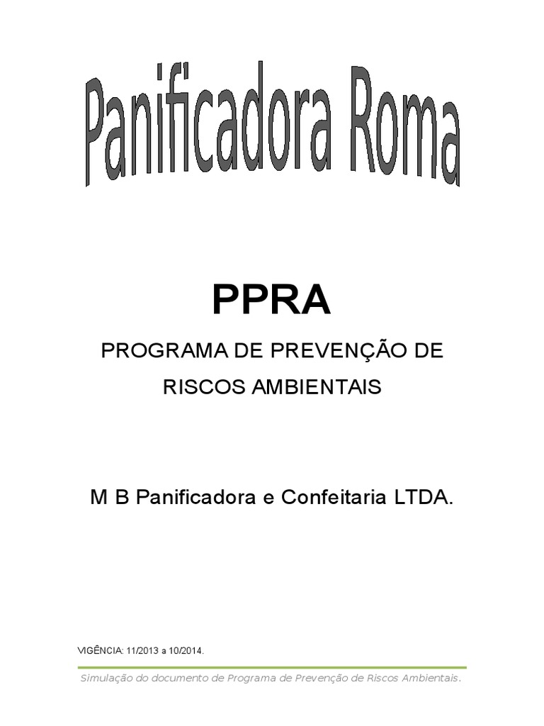 Simulação do documento de Programa de Prevenção de Riscos Ambientais.