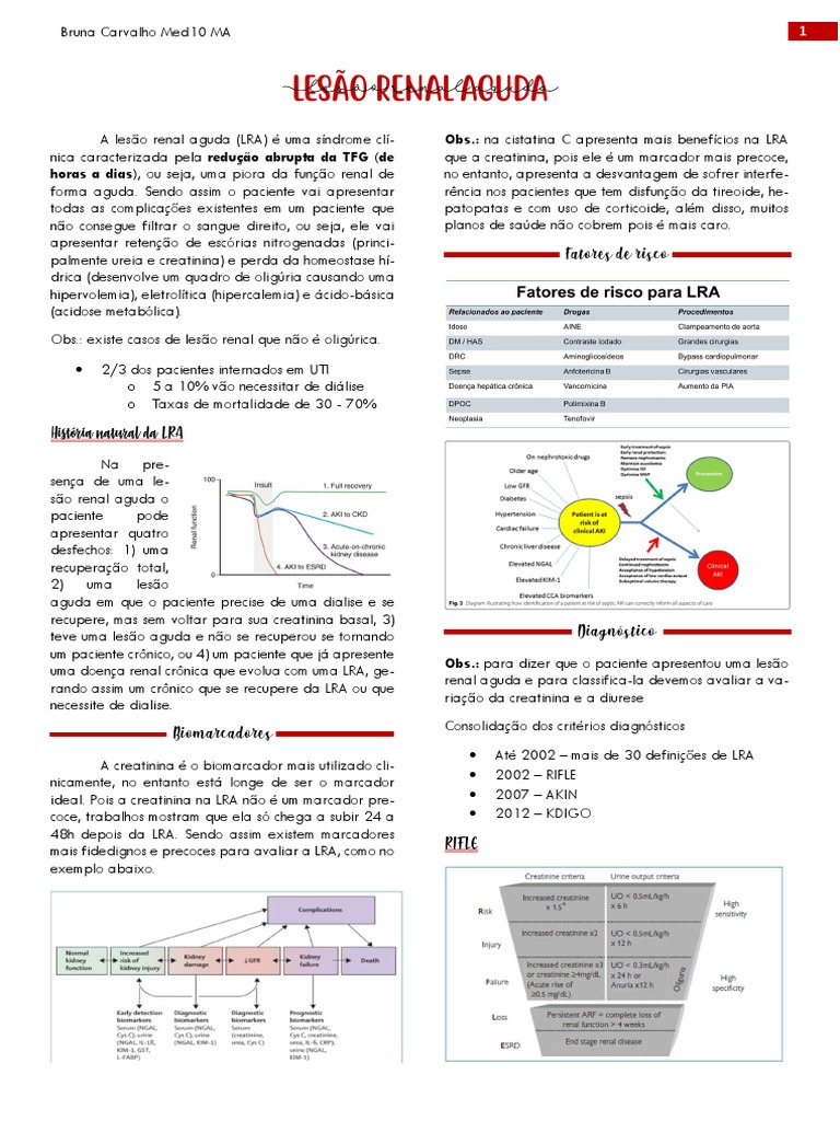 A lesão renal aguda (LRA) é uma síndrome clí- Obs.: na cistatina C apresenta mais benefícios na LRA