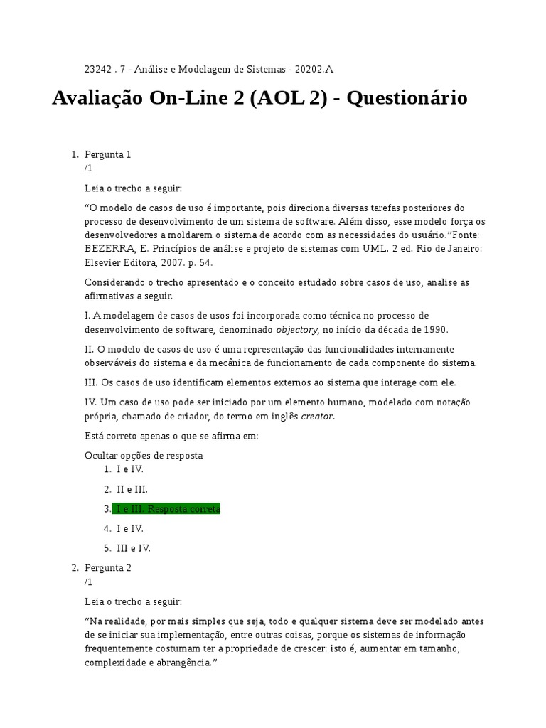 Avaliação On-Line 2 (AOL 2) - Questionário