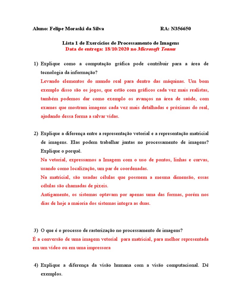 Data de entrega: 18/10/2020 no Microsoft Teams