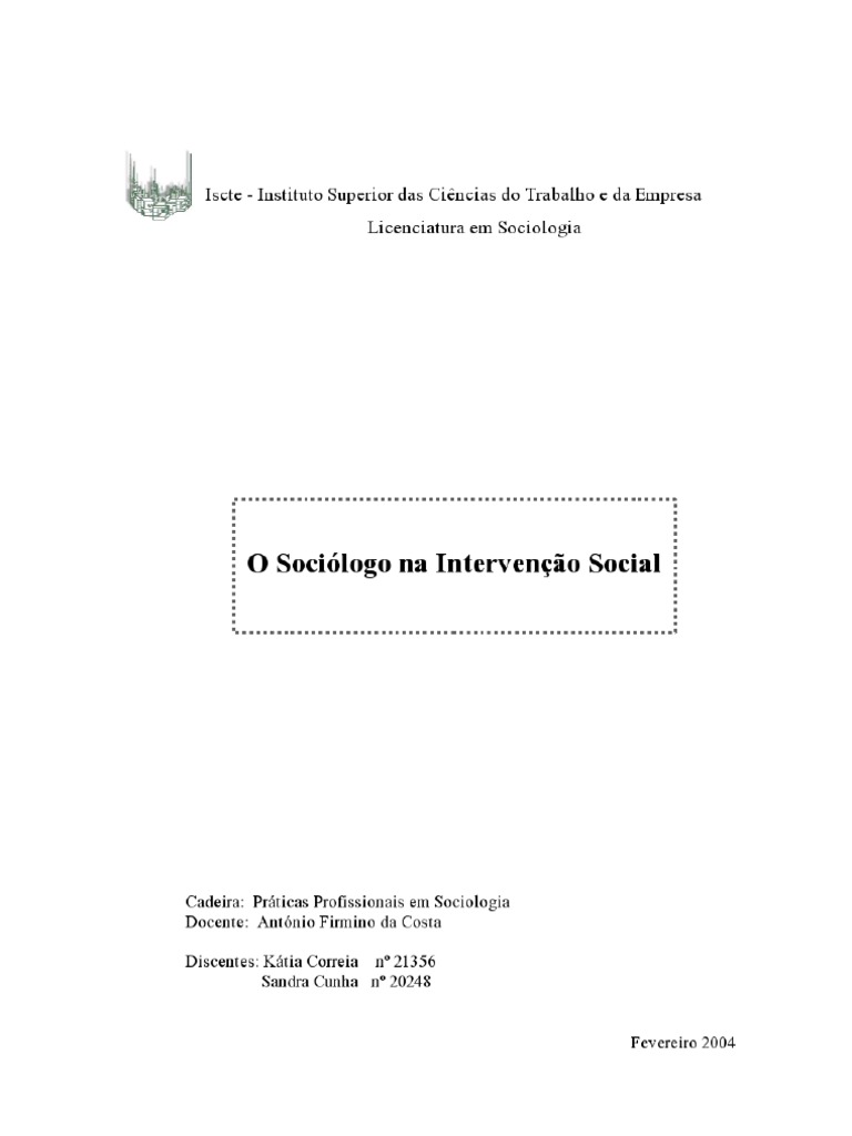 O Sociólogo na Intervenção Social