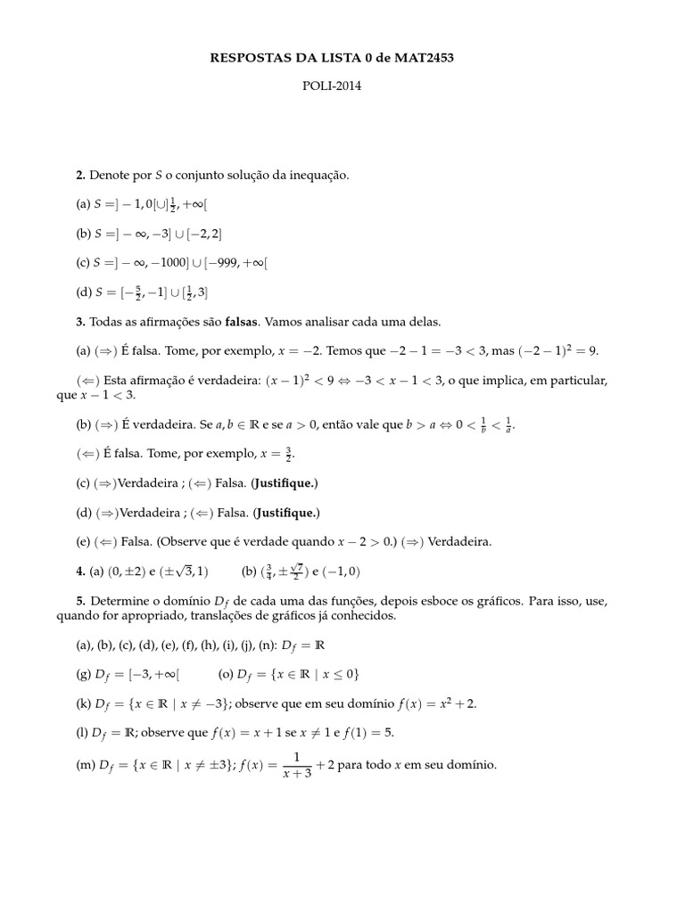 RESPOSTAS DA LISTA 0 de MAT2453