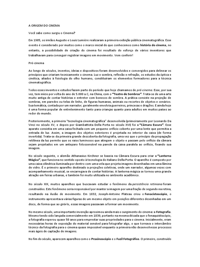 Você sabe como surgiu o Cinema?