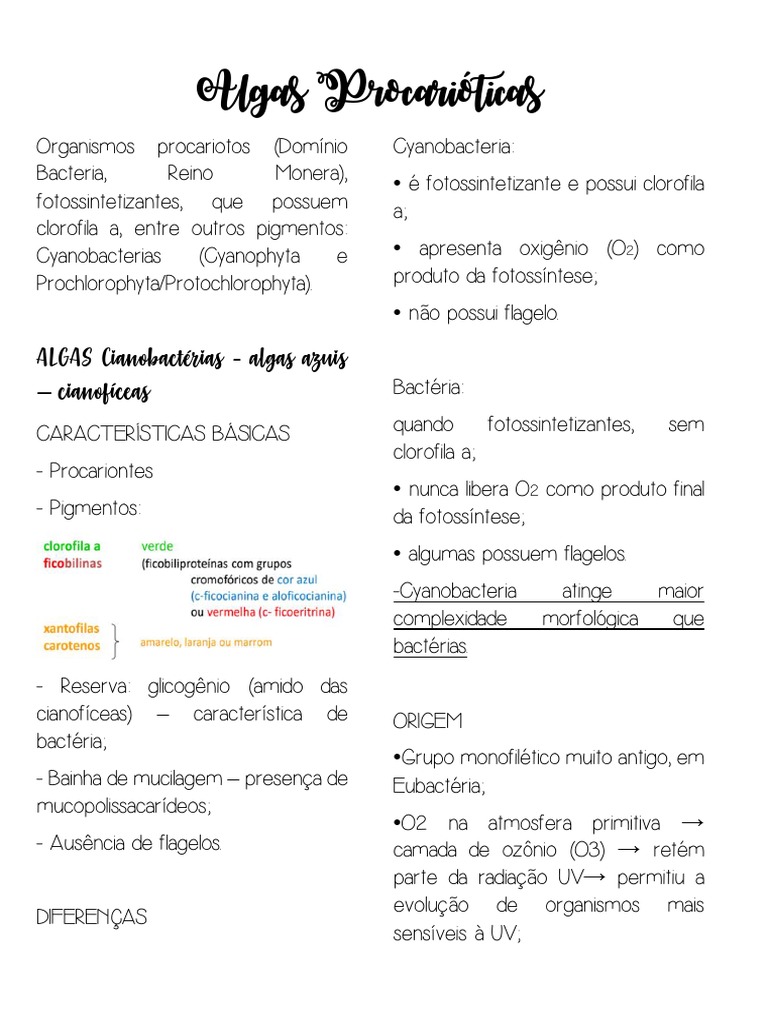 cianofíceas) – característica de ORIGEM