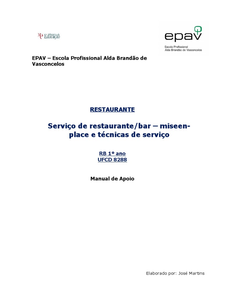 Nome do Manual: Manual de Serviço de restaurante/bar – miseenplace e técnicas