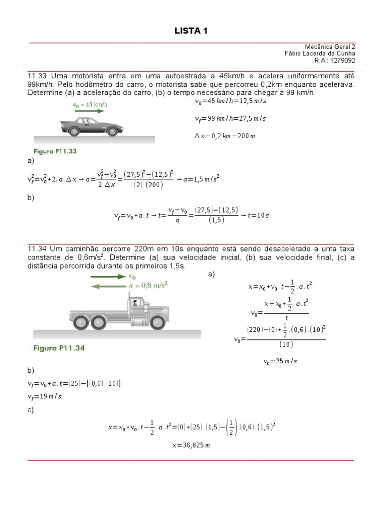 11.34 Um caminhão percorre 220m em 10s enquanto está sendo desacelerado a uma taxa