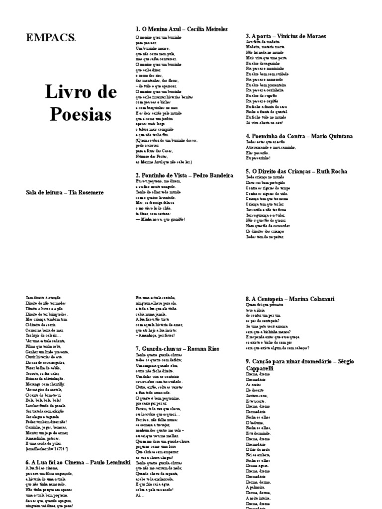 12. A Canção dos tamanquinhos – Cecília 14. Meus oito anos – Casimiro de Abreu