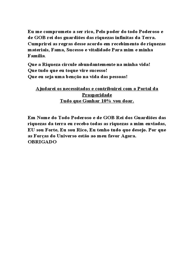 Eu me comprometo a ser rico, Pelo poder do todo Poderoso e