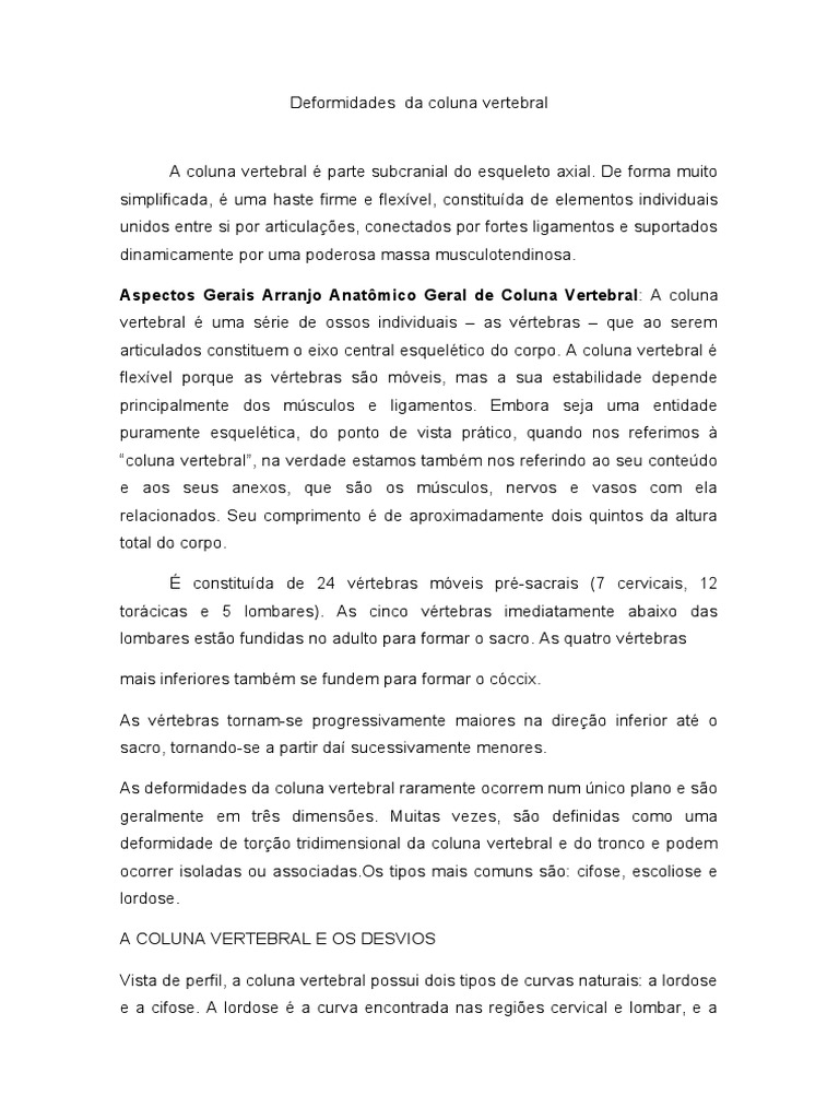 ocorrer isoladas ou associadas.Os tipos mais comuns são: cifose, escoliose e