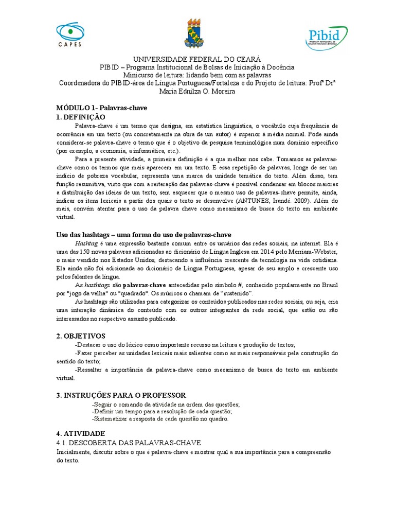 Inicialmente, discutir sobre o que é palavra-chave e mostrar qual a sua importância para a compreensão