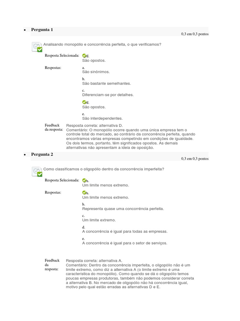 resposta: Comentário: O monopólio significa ausência de concorrência, o que nos