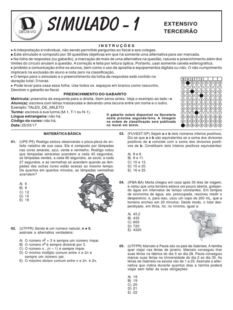 Este simulado é composto por 30 questões objetivas em que há somente uma alternativa para ser marcada.