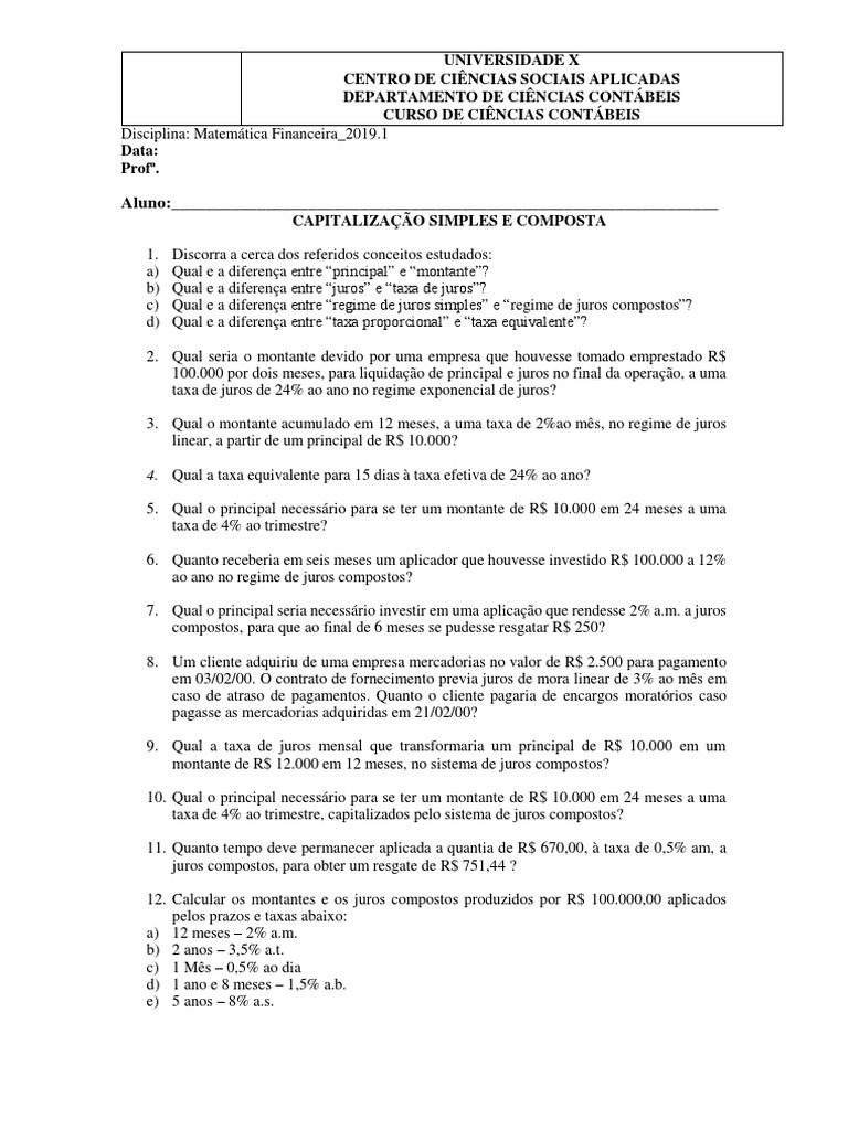 3. Qual o montante acumulado em 12 meses, a uma taxa de 2%ao mês, no regime de juros