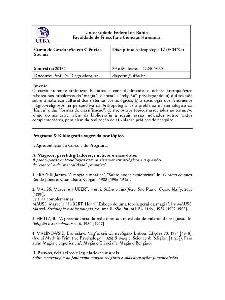 relativo aos problemas da “magia”, “ciência” e “religião”, privilegiando: a) a discussão