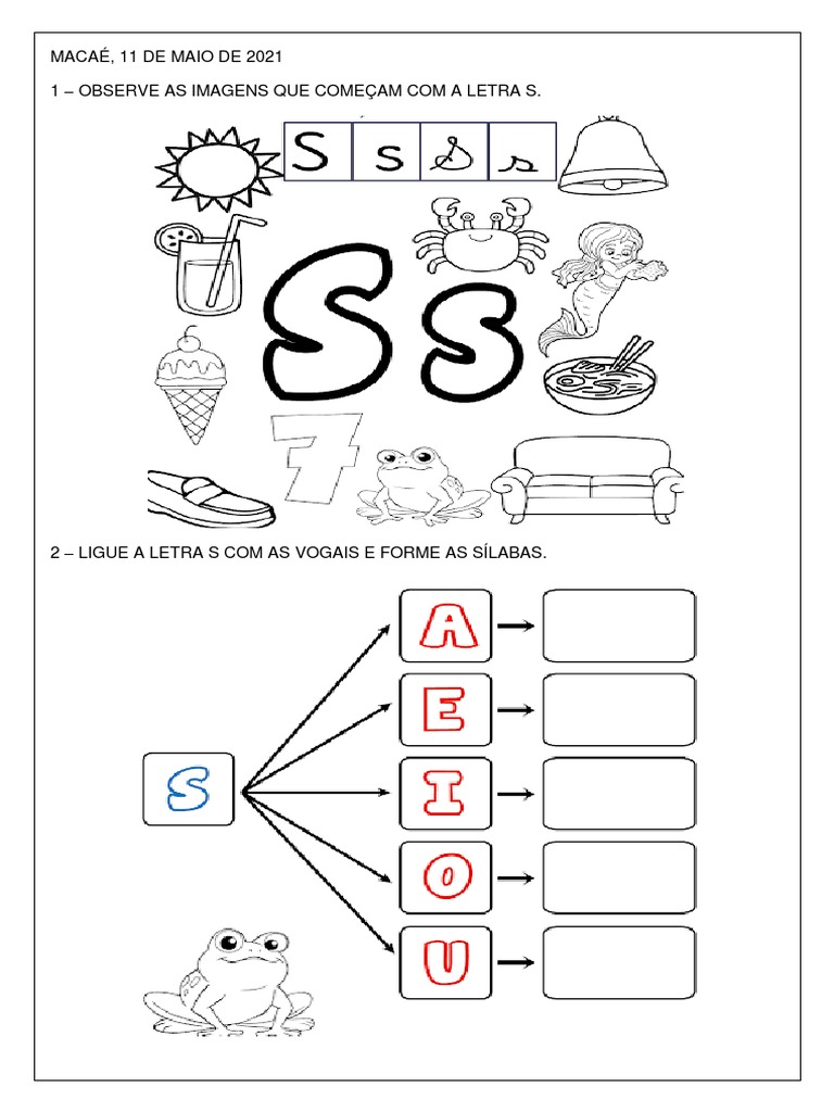 2 – LIGUE A LETRA S COM AS VOGAIS E FORME AS SÍLABAS.