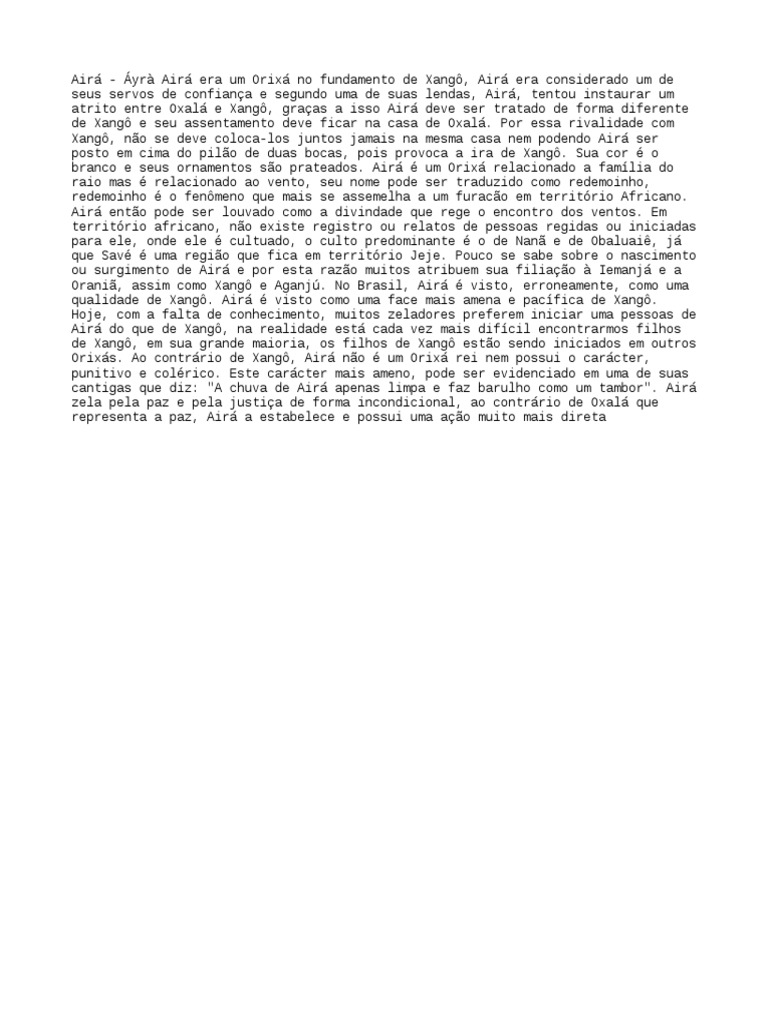 qualidade de Xangô. Airá é visto como uma face mais amena e pacífica de Xangô.