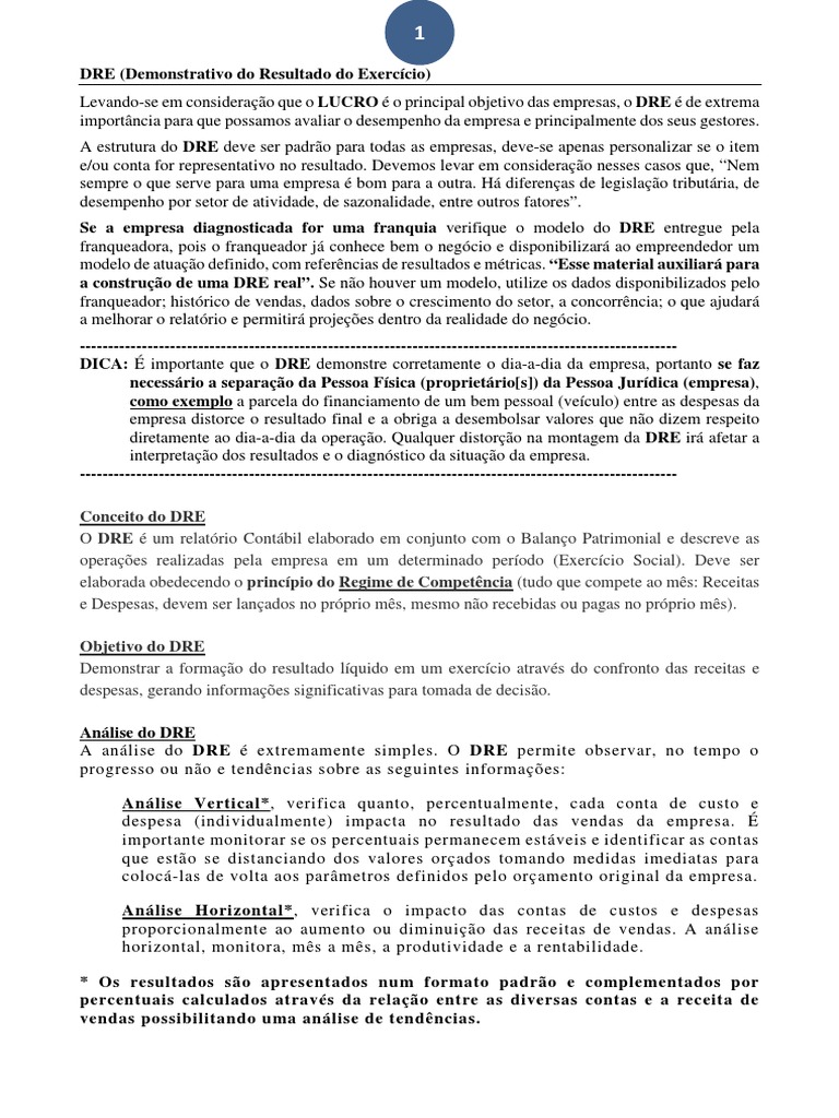 DRE (Demonstrativo do Resultado do Exercício)