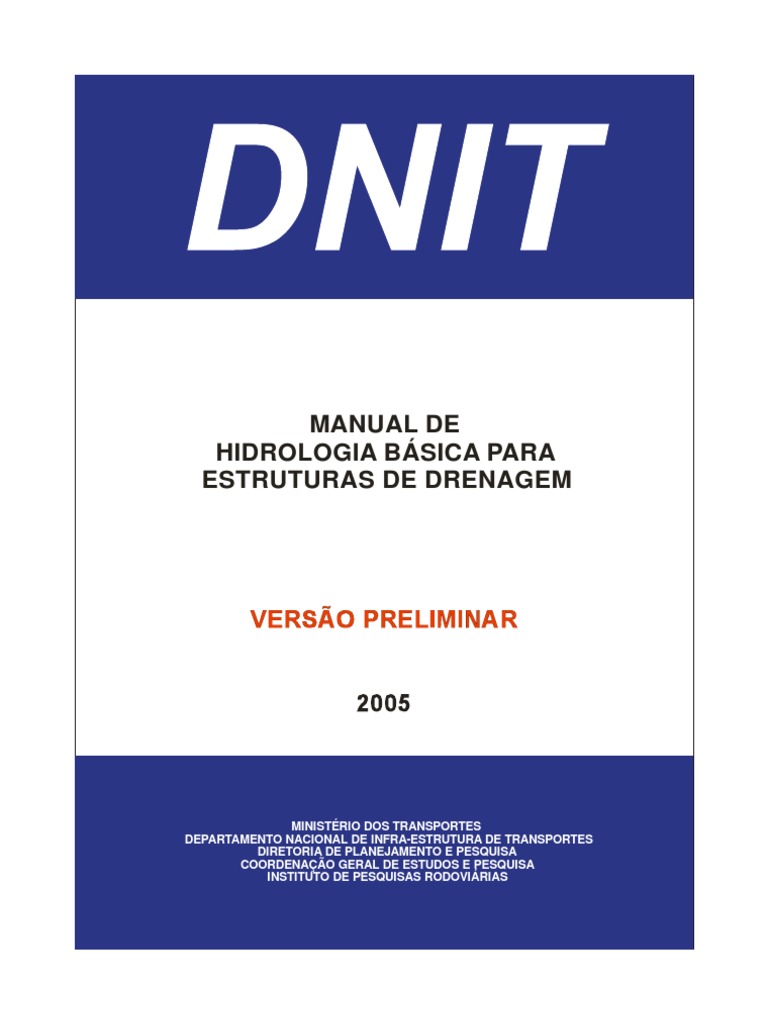 A presente edição do Manual Hidrologia Básica para Estruturas de Drenagem tem por objetivo