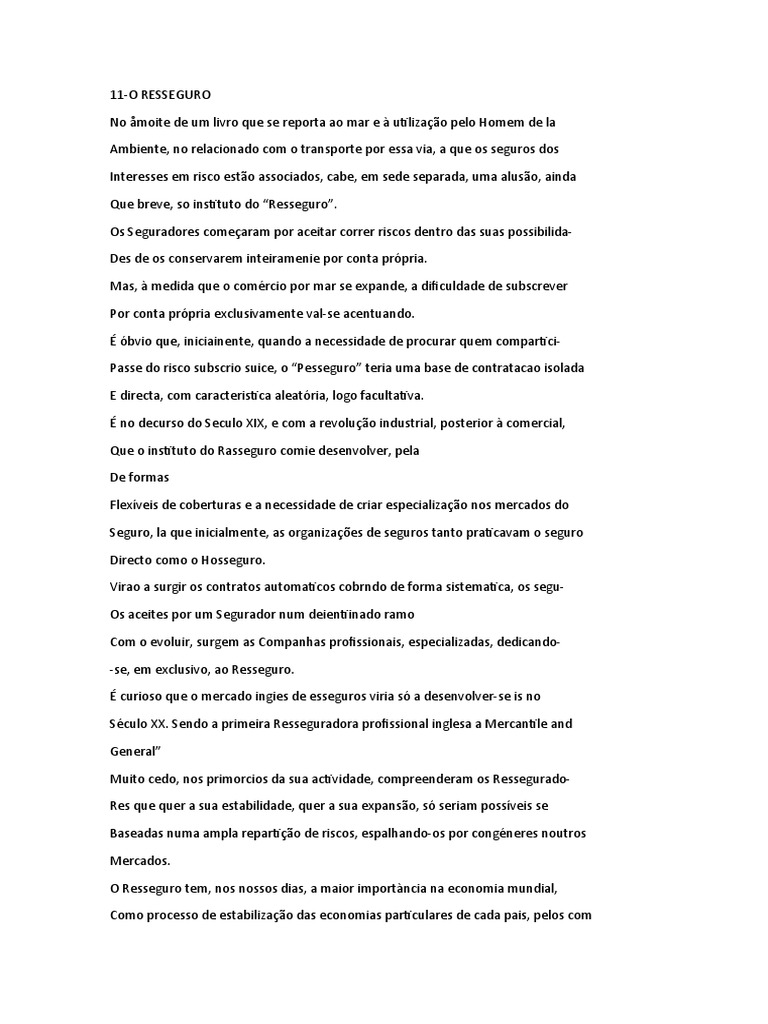 Já vimos que, fundamentalmente, o objectivo do Resseguro é uma repartição de