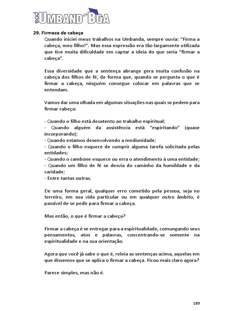 Umbanda caminham juntos, quanto maior a firmeza de cabeça de um
