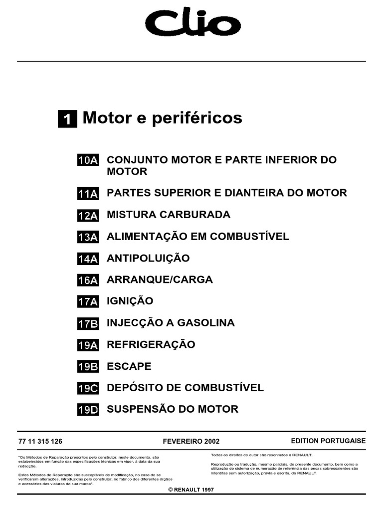 Para mais informações sobre os Manuais de Reparação respeitantes ao CLIO II, consultar a Nota Técnica 3627A.