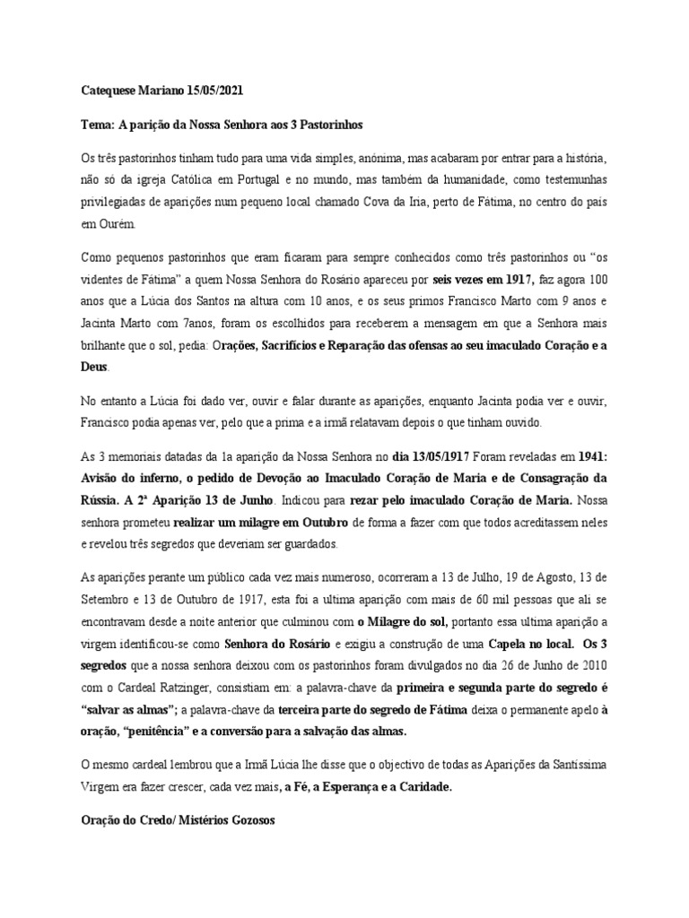 Catequese Mariano 15/05/2021