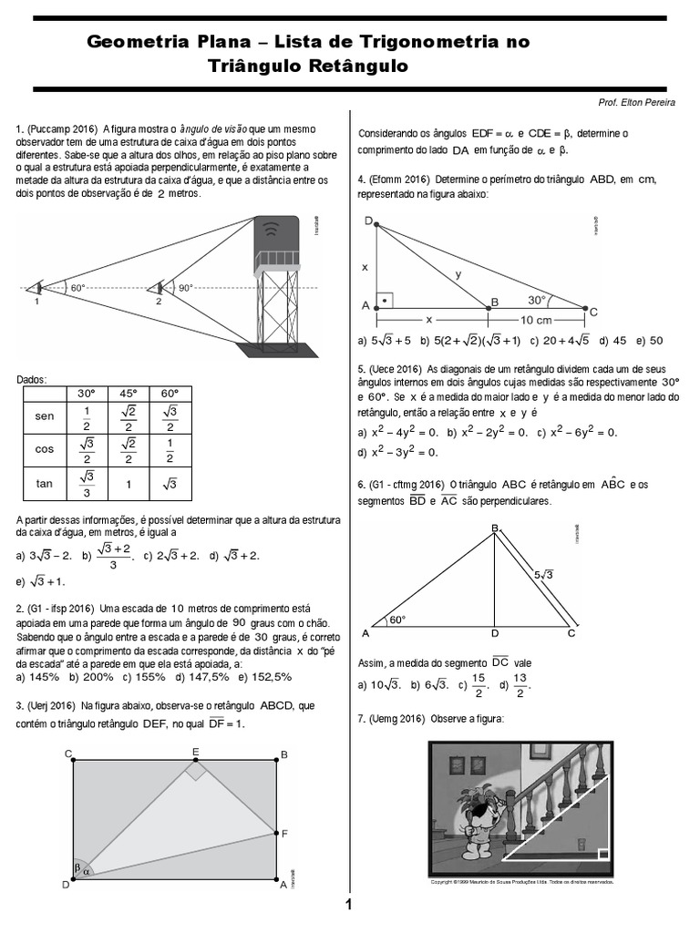 contém o triângulo retângulo DEF, no qual DF 1. 7. (Uemg 2016) Observe a figura: