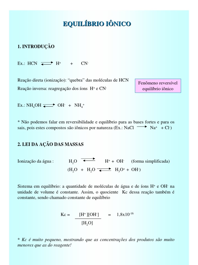 4. DISSOCIAÇÃO DE ELETRÓLITOS FRACOS