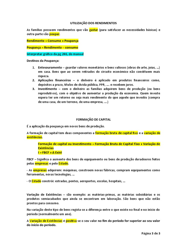 A formação de capital tem duas componentes a formação bruta de capital fixo e a variação de