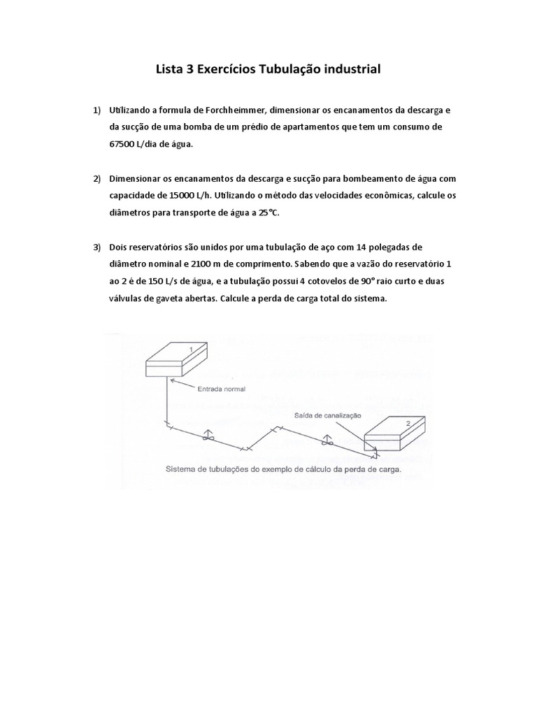 Lista 3 Exercícios Tubulação industrial