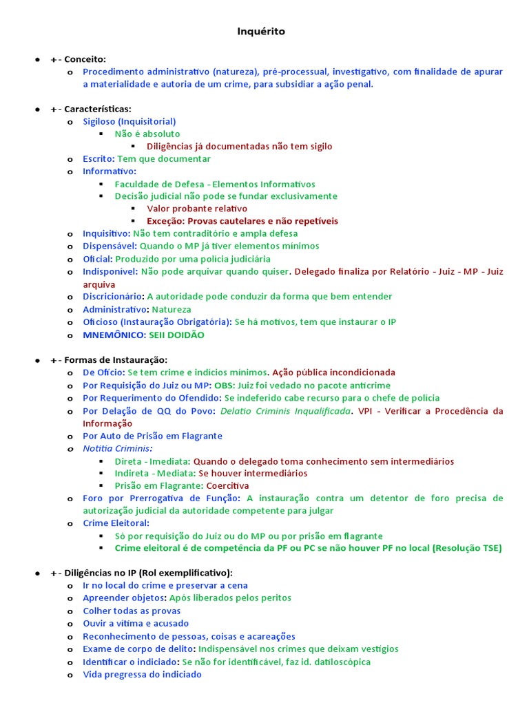 + - Diligências no IP (Rol exemplificativo):