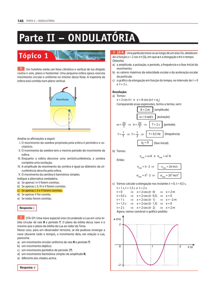 Resposta: c t=2s ⇒ x = 2 cos (π · 2) ⇒ x = 2 m