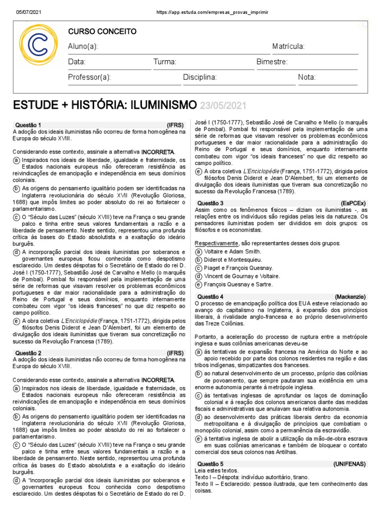 ESTUDE + HISTÓRIA: ILUMINISMO 23/05/2021