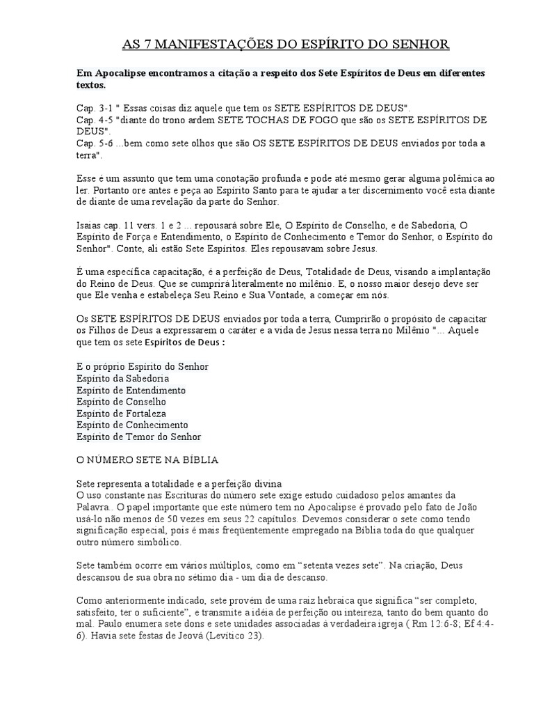 AS 7 MANIFESTAÇÕES DO ESPÍRITO DO SENHOR